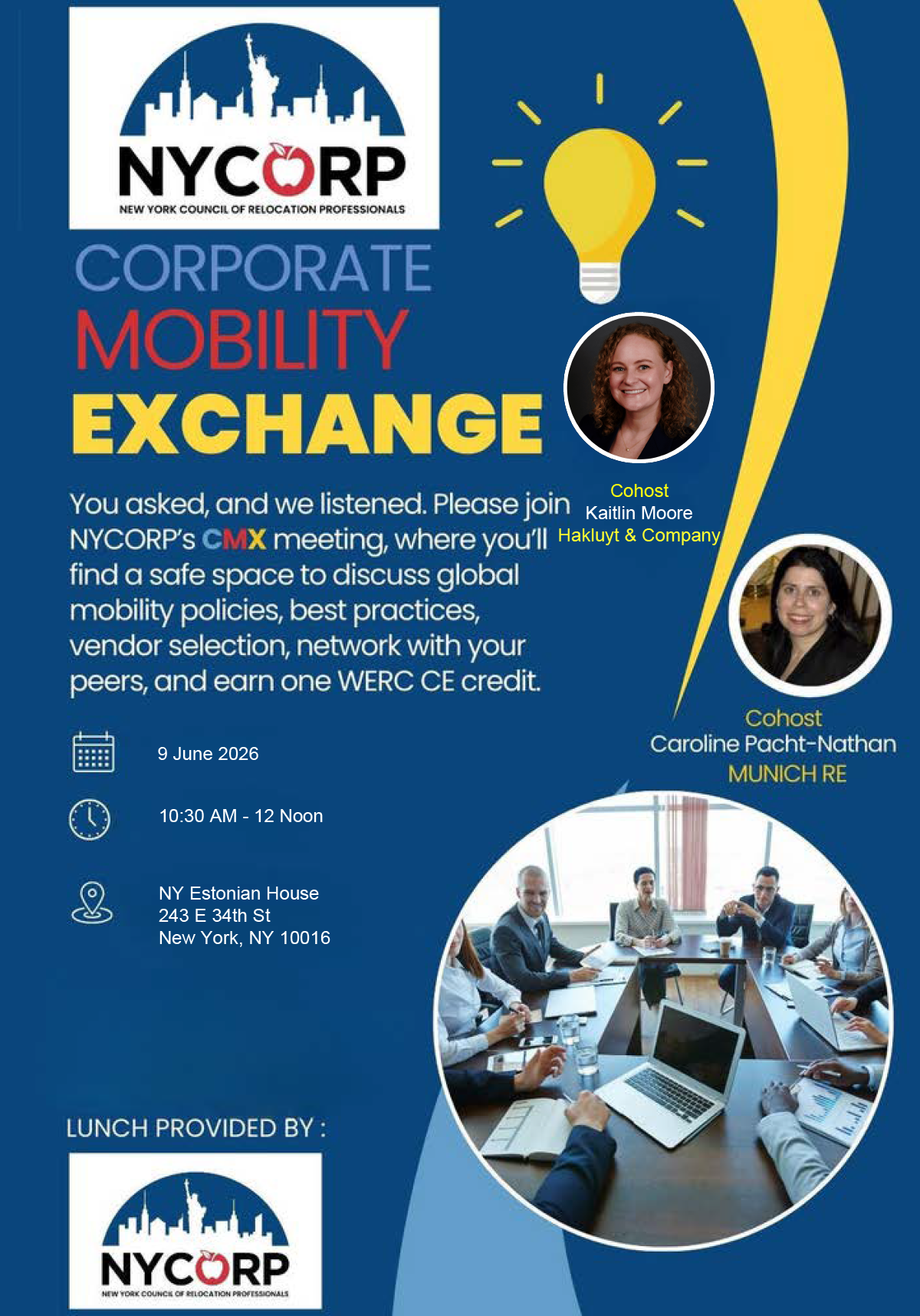 Global Learning February 1, 2026NYCORP Summer SignatureFebruary 1, 2026 Corporate Mobility Exchange Corporate Mobility Exchange Tues, June 9, 2026 10:30 am to 12:00 Noon Location: NY Estonian House, 243 E 34th St, New York, NY 10016 Register today Share Related postsFebruary 1, 2026Holiday Party Read moreFebruary 1, 2026Corporate Panel – Ask the Experts Read moreBusinesswoman Business People Commuters Walking Through City with Motion Blur Double Exposure LightsFebruary 1, 2026Corporate Mobility Exchange Read more